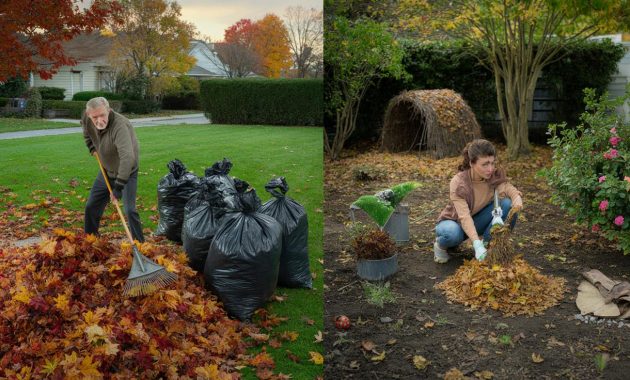 On a grey Saturday in late October, the first thing you hear in the neighborhood isn’t birdsong. It’s the whine of leaf blowers. One by one, gardeners and homeowners step out with rakes, bags, and that determined look that says: today, the yard will be “clean.” You see the same scene on every street — piles of crisp gold and red leaves scraped into plastic sacks, lined up at the curb like an autumn funeral procession. Kids who tried to jump into them are shooed away. The lawn must breathe. The garden must be “tidy.”