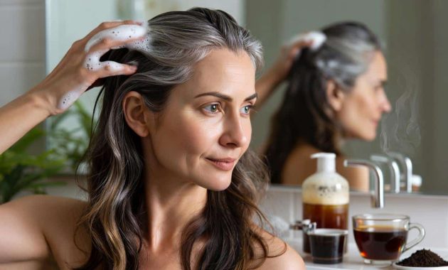 | Natural darkening | Use strong black tea or coffee mixed with shampoo | Softer, gradual coverage of grey without harsh dyes |